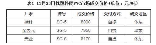 據(jù)找塑料網(wǎng)成交數(shù)據(jù)顯示(見表1)今日PVC期貨再度轉入大跌格局,現(xiàn)貨市場觀望氣氛濃厚,拿貨意向薄弱,個別生產(chǎn)企業(yè)也出現(xiàn)下調現(xiàn)象,但據(jù)找塑料聽聞,近期西北生產(chǎn)企業(yè)聯(lián)合體正在秘密籌備保價會議。今日華東5型普通電石料主流價格維持在7900-8200元/噸;華南市場電石法SG-5主流成交價8300-8400元/噸(自提)。