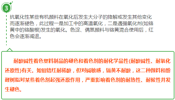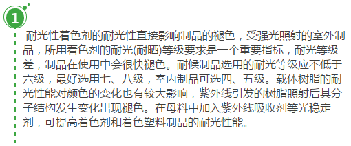 塑料著色制品受多種因素影響會發(fā)生褪色。塑料著色制品的褪色與顏料、染料的耐光性、抗氧性、耐熱性、耐酸堿性以及所用樹脂的特性有關(guān)。應(yīng)根據(jù)塑料制品的加工條件和使用要求,在生產(chǎn)母料時對所需顏料、染料、表面活性劑、分散劑、載體樹脂和防老化助劑的上述性能進(jìn)行綜合評定后才可選用。