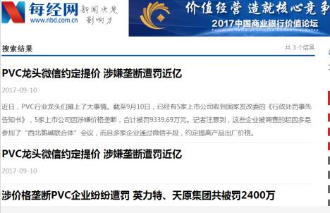 文章標(biāo)題:多家PVC企業(yè)在微信群商量漲價(jià)被發(fā)現(xiàn) 遭罰款將近1億