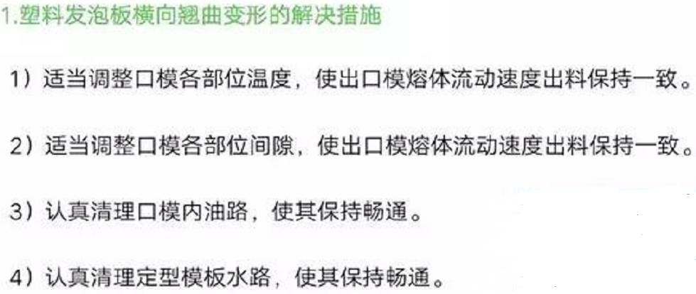 發(fā)泡板出現(xiàn)扭曲、不平整質(zhì)量缺陷原因和處理措施: