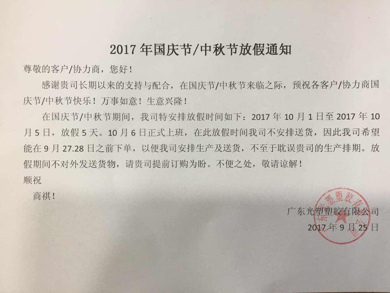文章標(biāo)題:2017年國(guó)慶/中秋放假通知
