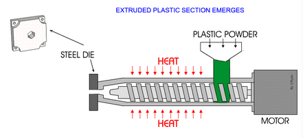 在塑料擠出成形工藝中,連續(xù)成型塑件(制品)用的模具。
