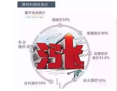 每年的最后兩月是傳統(tǒng)旺季,連月來,我們見到的是原材料瘋漲,各種輔料也比拼著漲價(jià),運(yùn)輸成本提高,人工工資也要漲。如今快遞費(fèi)也都漲價(jià)了!