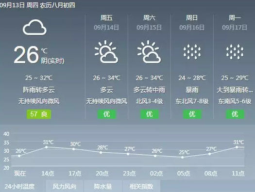 14-15日受“山竹”外圍下沉氣流影響,天氣晴熱;