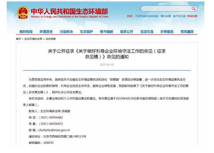 近日,生態(tài)環(huán)境部辦公廳印發(fā)通知,向社會(huì)公開征求《關(guān)于做好引導(dǎo)企業(yè)環(huán)境守法工作的意見(征求意見稿)》意見。《意見》明確要求,建立單位內(nèi)部“首接責(zé)任制”,對行政相對人實(shí)行有關(guān)事項(xiàng)“一次性告知”;對一般違法行為慎用查封、扣押等措施,嚴(yán)格禁止“一律頂格處罰”“一律關(guān)停”“先停再說”等簡單粗暴行為。