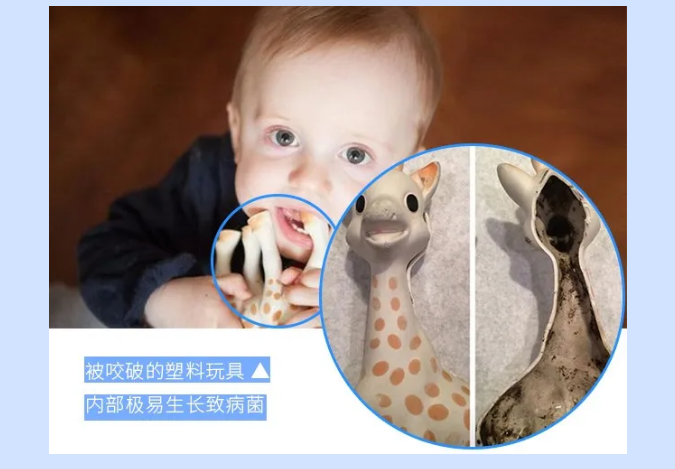 不僅如此,塑料制品本身的材料也會引來大量細(xì)菌等微生物,加工過程中使用的增塑劑、 纖維素、 濕潤劑、穩(wěn)定劑和色素等原料,一旦制品發(fā)生嚴(yán)重破裂情況,它們就極易成為微生物的溫床;還有一些聚合物的表面是多孔的,會加速微生物的污染和聚集,進(jìn)而導(dǎo)致污漬和異味,并可能傳播細(xì)菌。例如,被咬破的塑料玩具。