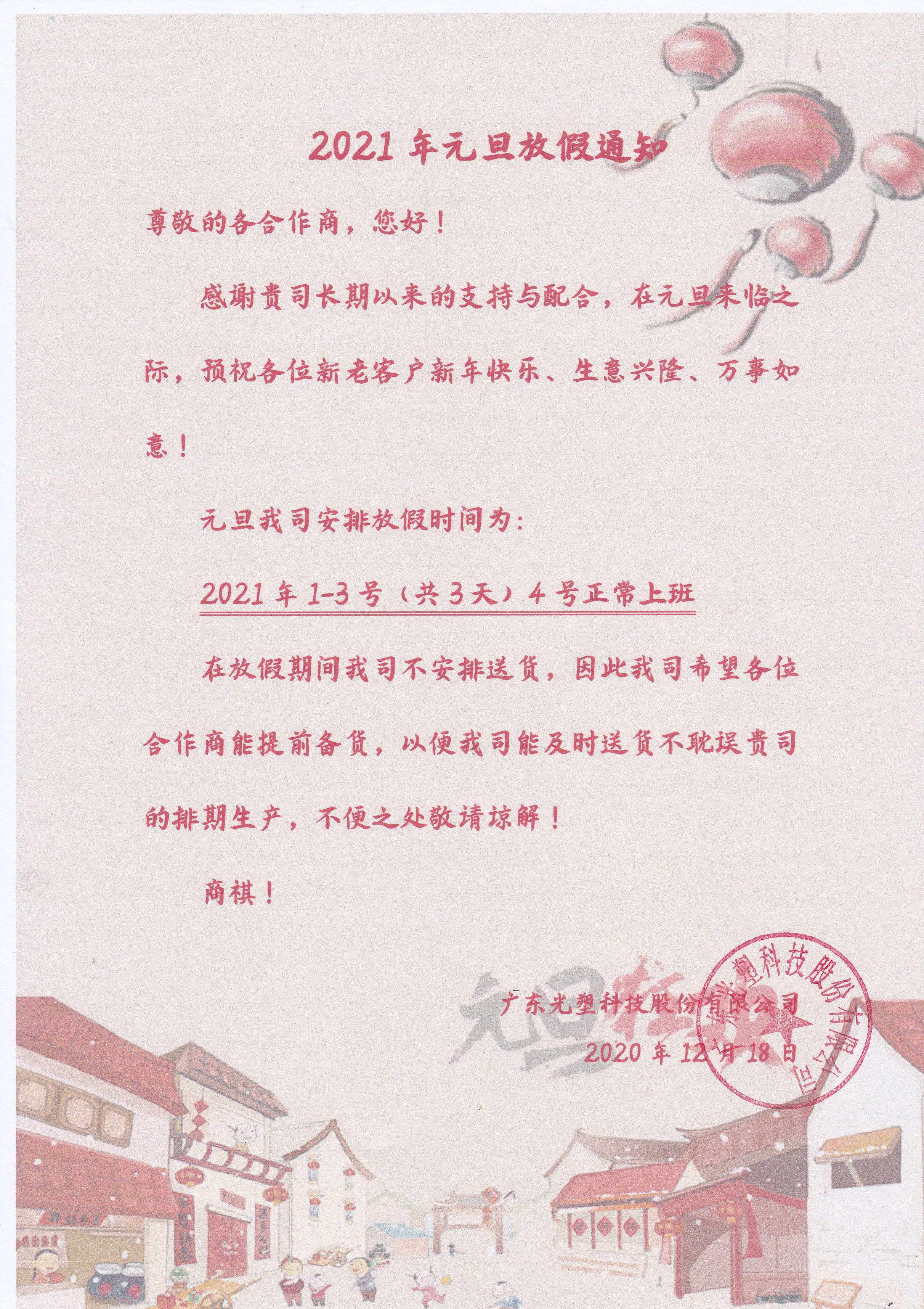 文章標題:2021年元旦假期通知